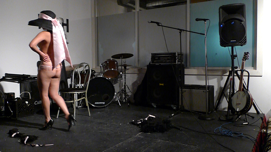 We went to visit Josie at a gallery open house and caught some performers in mid swing .