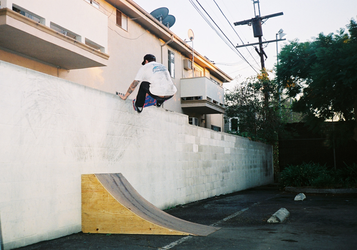 Spanky and the Tommy Guerrero board grind the top of the roughest wall in Hollywood. This was pure aces