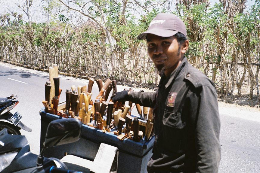 The shape froze and as i got closer i saw a short Balinese man holding a garden hose with a little bit of water coming out the end . In the darkness i could see the whites of his eyes. He was more scared than me . He dropped the hose and started praying repeating SORRY BOSS SORRY BOSS SORRY BOSS over and over. I mustive looked insane to him at 4am . Skinny white man in boxers covereed in tattoos with a huge mustache weilding a bread knife . I looked like Begbie from Trainspotting on vacation . I dropped my knife and we both said sorry a million times while he prayed and i sat on the porch and literally said out loud WHERE THE FUCK AM I ..............